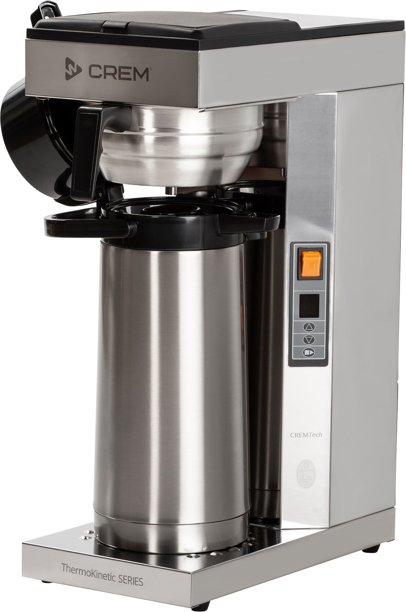 Denne Crem ThermoKinetic Thermos A 2,2 L kaffemaskine er en fleksibel enhed med automatisk vandpåfyldning. Kaffen brygges direkte gennem låget ned i en 2,2 liters termoflaske, du kan bruge til servering.