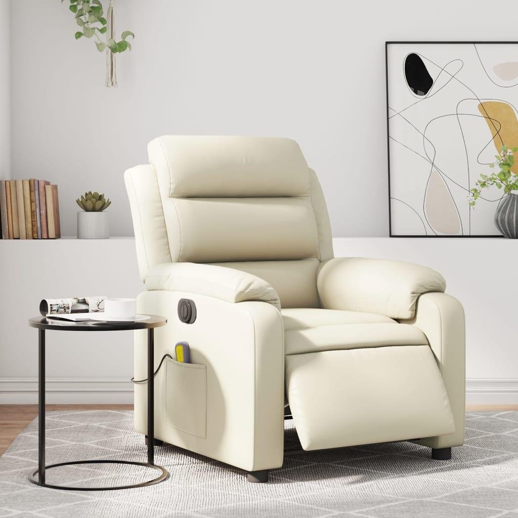 Eldrevet massagestol kunstlæder cremefarvet