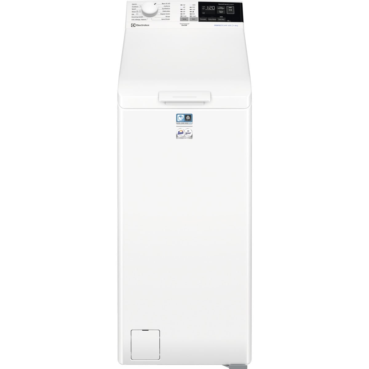 Dit hverdagstøj, vasket med omsorg. 600 topbetjent vaskemaskine med SensiCare-system tilpasser programvarighed efter fyldningens størrelse. Det bruger den rette mængde vand, tid og energi til at sikre perfekt pleje af vasketøjet. Tøjet holder sig fl