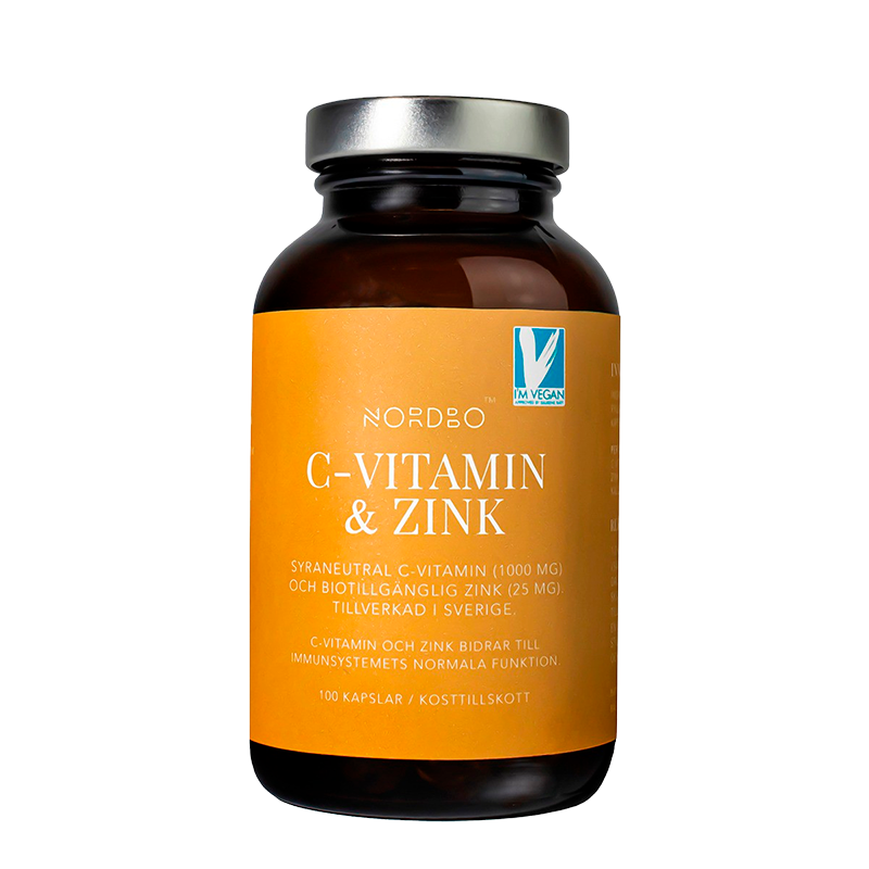 Vegansk kosttilskud fra NORDBO med C-vitamin og zink.